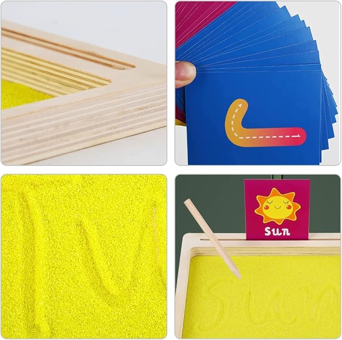 - 【Perfect Gifts for Kids】Our sandbox is a quality learning toy that makes a great gift for boys and girls. Can be used with sandpaper letters, ABC pull-out cards, wooden letters, wooden numbers and preschool pull-out cards.